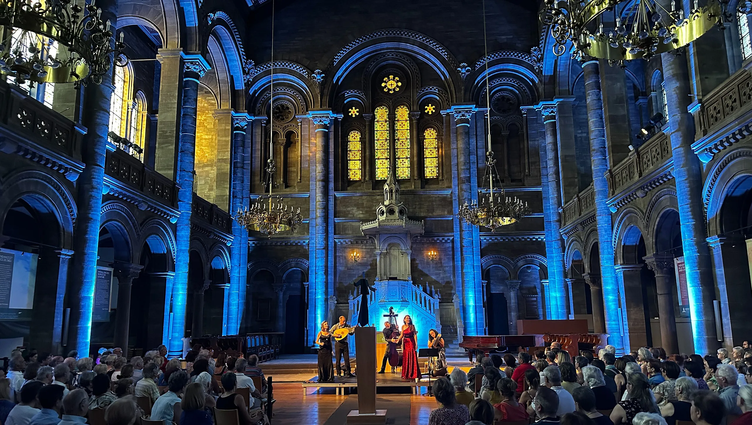 L'église du Temple Neuf dispose de deux instruments prestigieux qui confèrent aux concerts une dimension unique : les grandes orgues Merklin (1877), chef d'oeuvre du style "symphonique", et le grand piano Steinway (1899), qui fait résonner l'époque romantique.